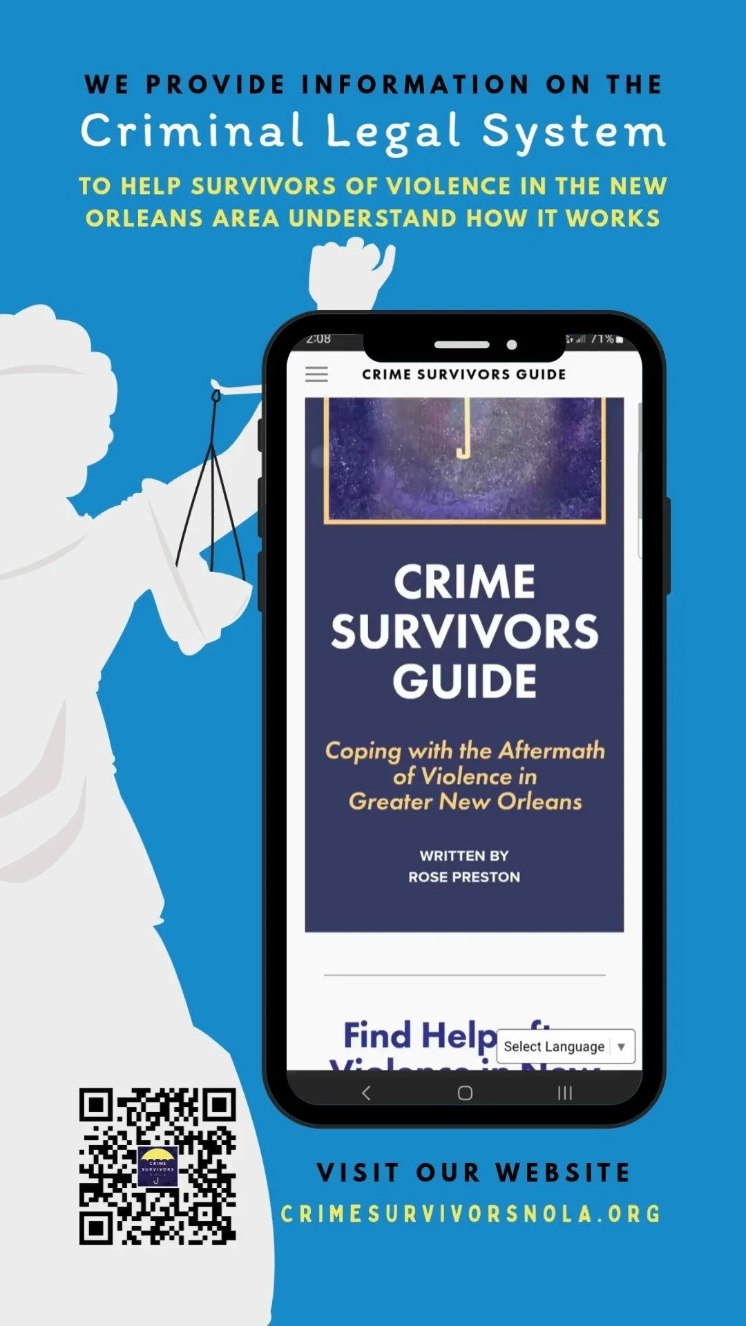 The Crime Survivors Guide was written by New Orleans survivors of violence. We want you to know that we are thinking of you, and we hope that these resources help.