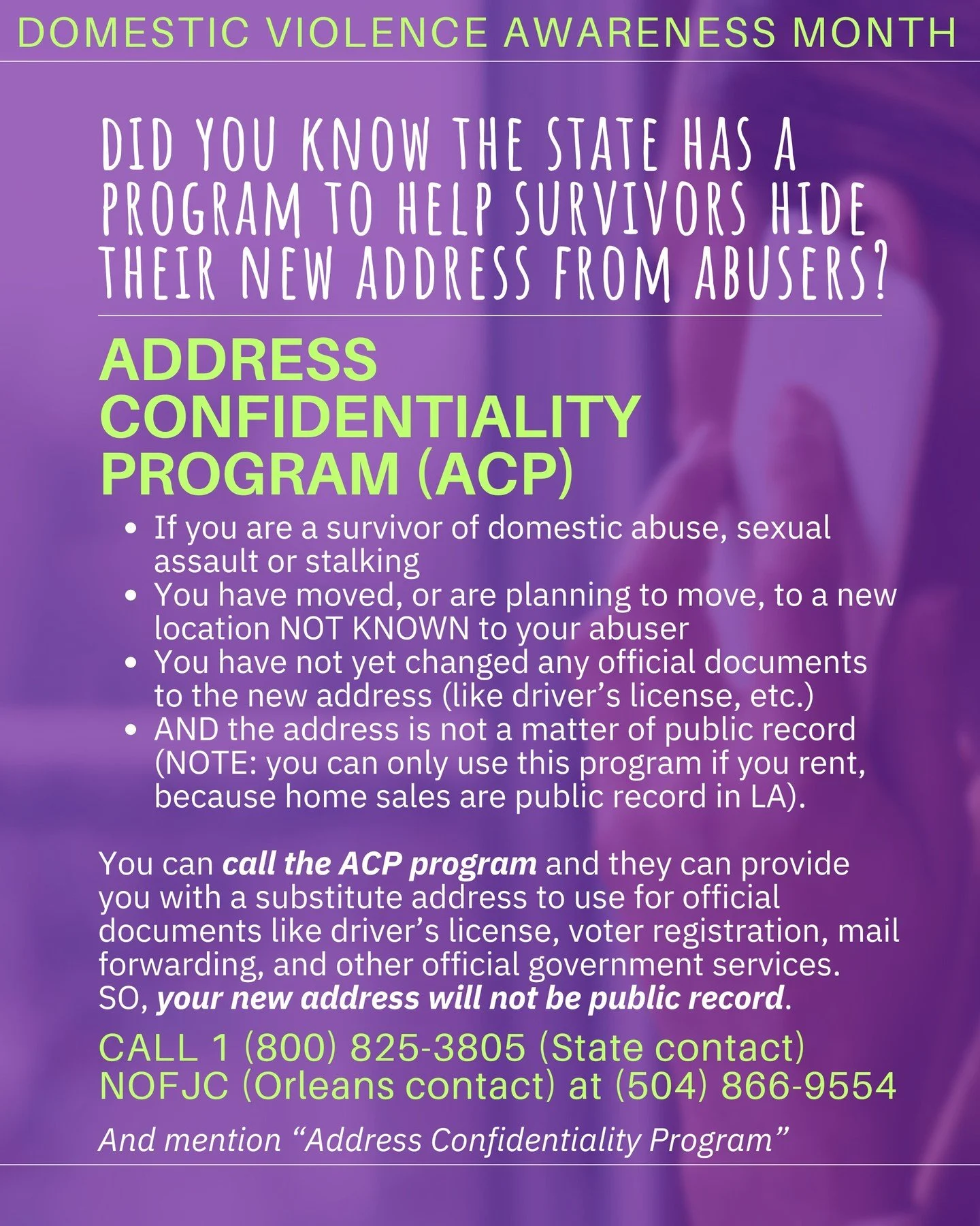 (225) 372-8995 • Crisis Line 24/7 (English/Spanish): 1 (888) 995-7273 • Visit website for text or online chat: https://www.lafasa.org/ • Provides advocacy and legal services directly to survivors; See “Resource Center” on website; Hours 9am-4pm; Legal support may be available if you are in a parish that does not have a local accredited sexual assault center, or if your accredited local sexual assault center does not offer legal support; Refer to LAFASA website for a list of accredited sexual assault centers in your area